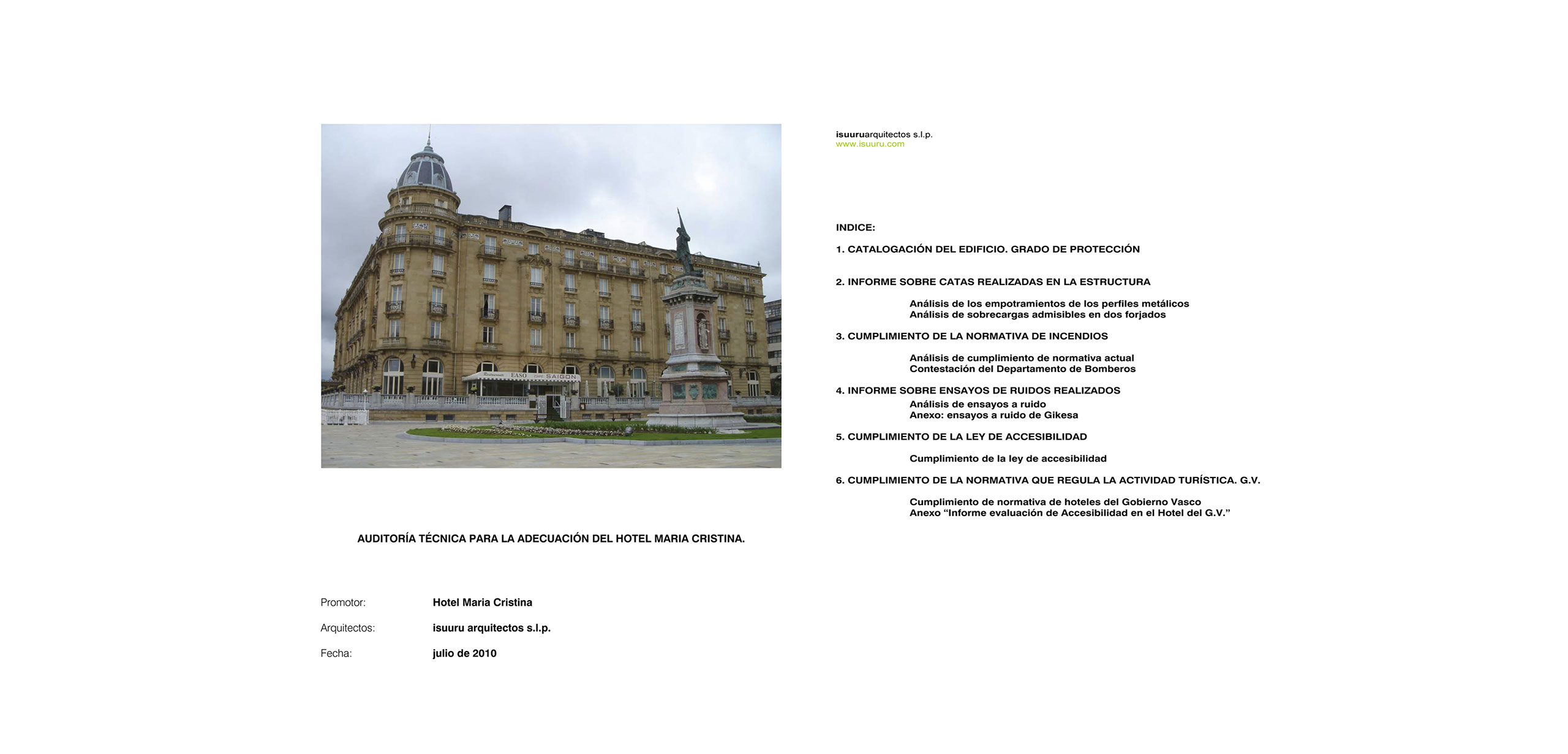Program: Diagnosis of the constructive state, and adaptation to building regulations in the Maria Cristina Hotel